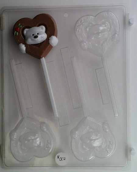 Molde de chocolate/caramelo, piruleta - Amor, cabeza de oso sonriente enmarcada