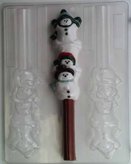 Molde de chocolate/caramelo, pretzel - Navidad, pila de tres muñecos de nieve lindos y juguetones, varilla de pretzel