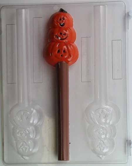Molde de chocolate/caramelo, pretzel - Halloween, pila de tres calabazas sonrientes Varilla de pretzel