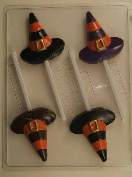 Molde para chocolate/caramelos, piruleta - Halloween, sombrero de bruja a rayas con hebilla