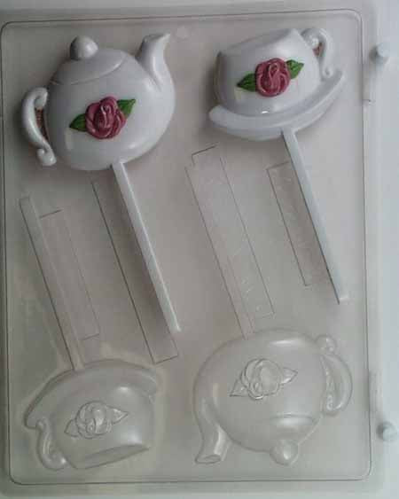 Molde para chocolate, caramelos, piruletas (para cualquier ocasión), taza y tetera con decoración de rosas