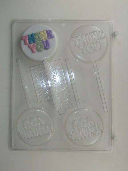 Molde para chocolate/caramelo, piruleta - Para cualquier ocasión, "Gracias" en forma redonda