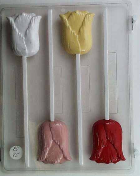 Molde para chocolate/caramelo, piruleta - Flor, tulipán, aspecto suave y plumoso