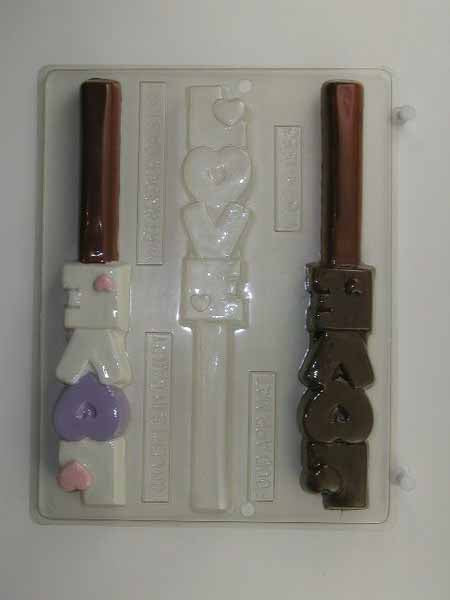 Molde de chocolate/caramelo, pretzel - Amor, "LOVE" apilado con corazones, varilla de pretzel