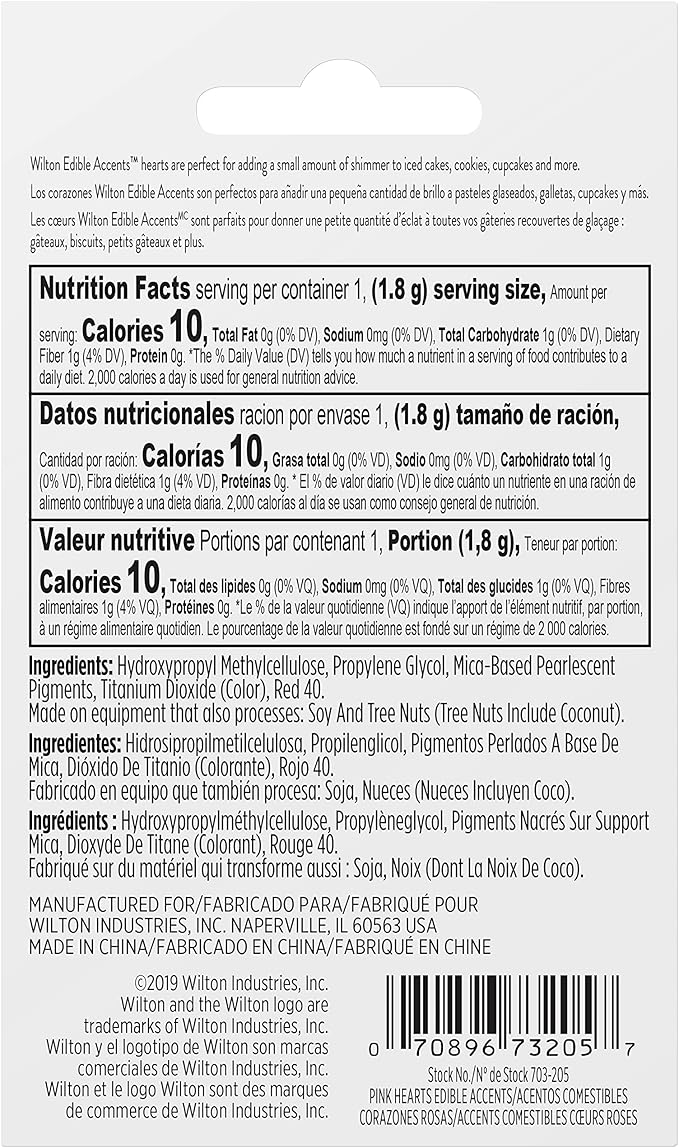 Add shimmer, charm, and a touch of elegance to your desserts with Wilton Edible Accents. These delicate, food-safe decorations—available in shapes like hearts and stars- bring a luxurious sparkle to cakes, cupcakes, cookies, truffles, and plated treats. Easy to apply and certified Kosher, they’re the perfect finishing touch for decorators who love to dazzle.