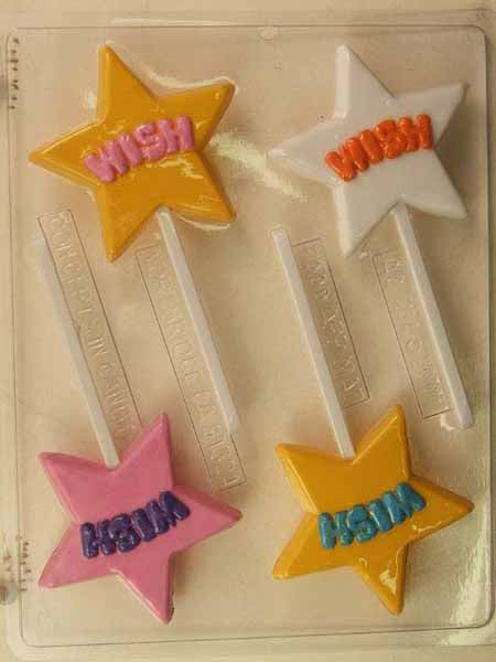 Molde para chocolate/caramelo, piruleta - Para cualquier ocasión, "Deseo" en letras de burbuja sobre estrella