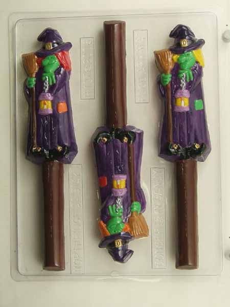Molde de chocolate/caramelo, pretzel - Halloween, bruja con escoba Varilla de pretzel