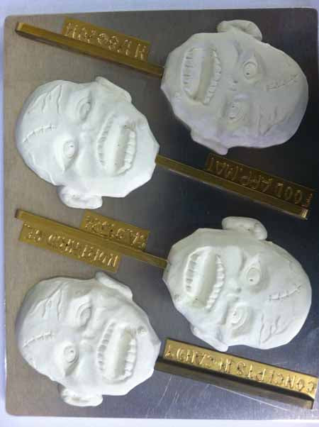 Molde para chocolate/caramelo, piruleta - Halloween, cabeza de zombi