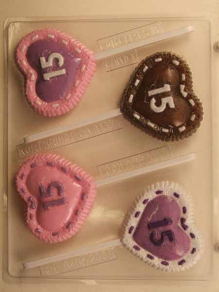 Շոկոլադե// Քաղցրավենիքի կաղապար, սառնաշաքար - սերկևիլ, '15'՝ տուֆտավորված սրտի վրա