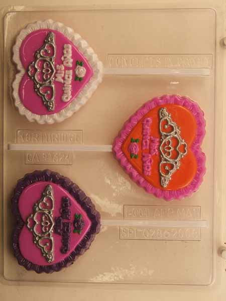 Շոկոլադե// Քաղցրավենիքի կաղապար, սառնաշաքար - սերկևիլ, պսակ «Mis Quince A–os» գրությամբ սրտի վրա՝ ժանյակով