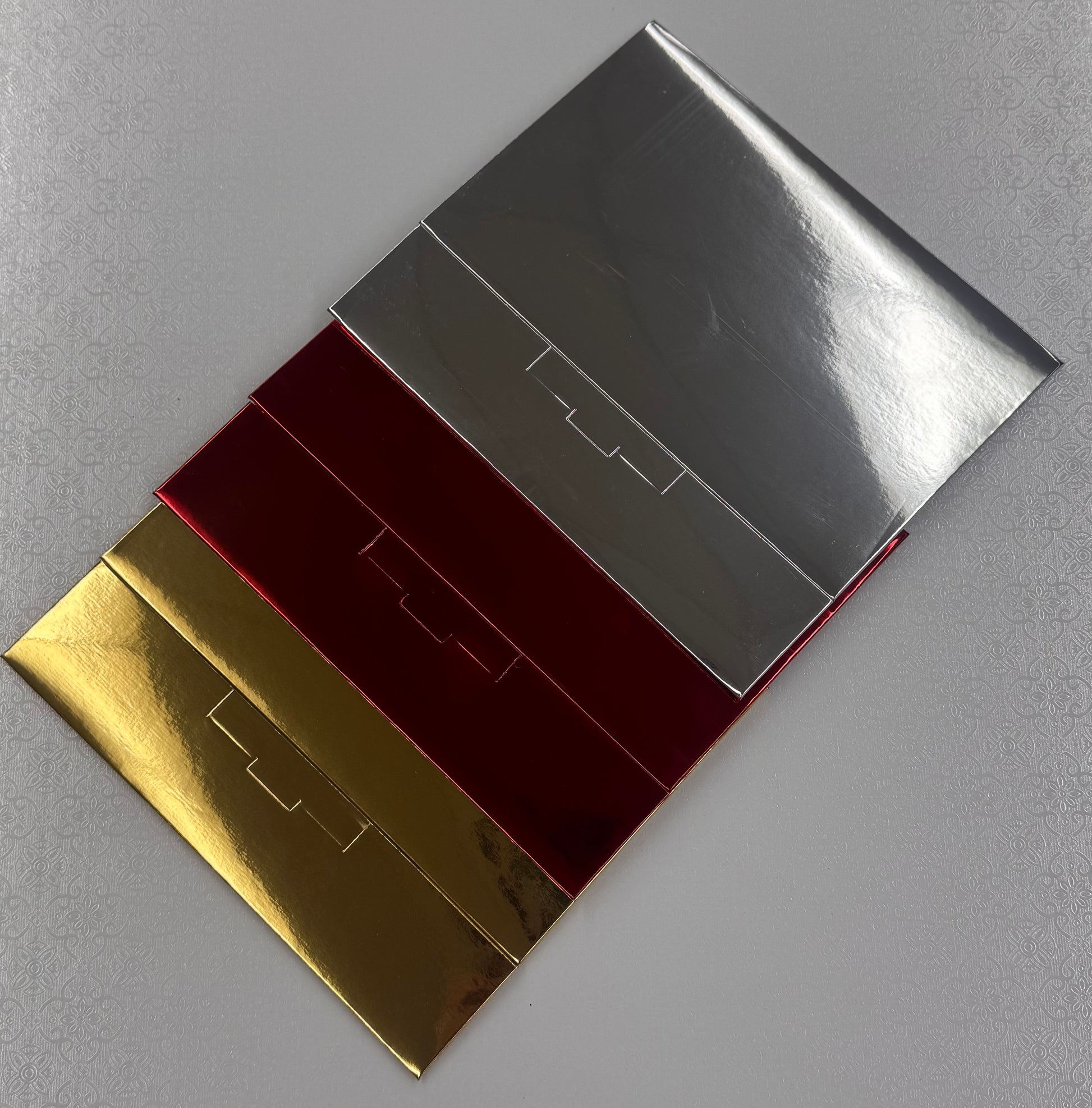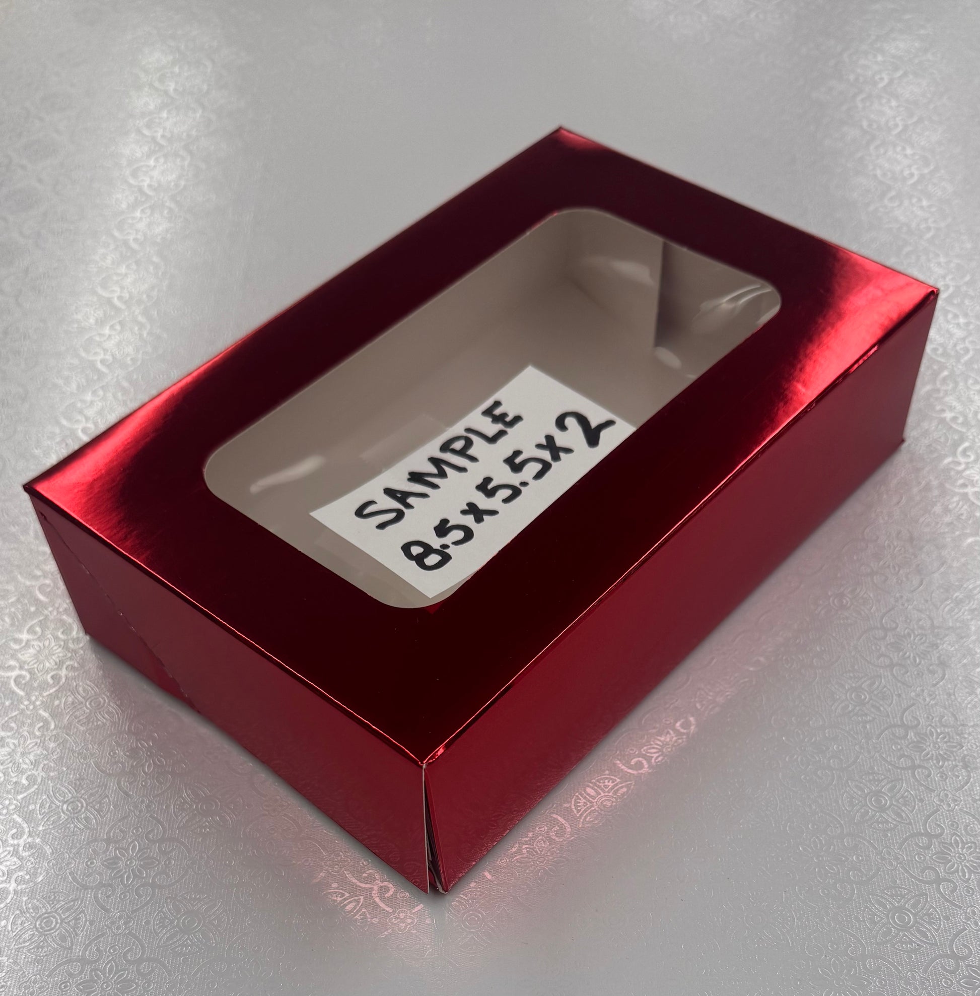 Վաճառվում է 10 հատանոց փաթեթով՝ ըստ գույների՝ մետաղական կարմիր, մետաղական ոսկեգույն և մետաղական արծաթագույն: Յուրաքանչյուր տուփ ունի թափանցիկ պատուհան՝ ձեր թխվածքաբլիթները ընդգծելու համար: Տուփերը նախապես ծալված են՝ հեշտ հավաքման համար: