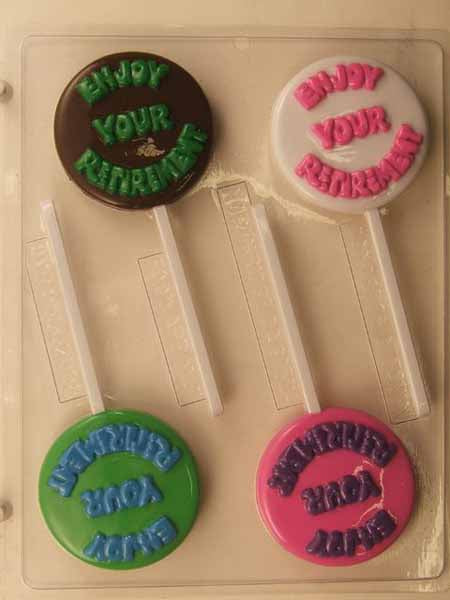 Շոկոլադե// Քաղցրավենիքի կաղապար, սառնաշաքար - թոշակի անցնելը, «Վայելեք ձեր թոշակը» կլորի վրա