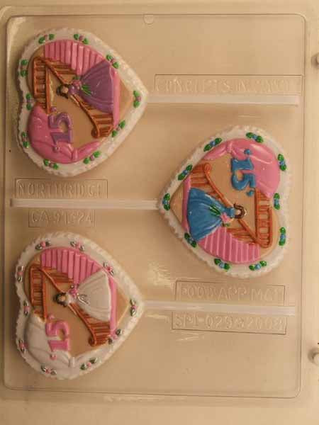 Շոկոլադե// Քաղցրավենիքի կաղապար, սառնաշաքար - սերկևիլ, աղջիկ աստիճանների վրա՝ սրտիկի վրա, ժանյակով և «15»