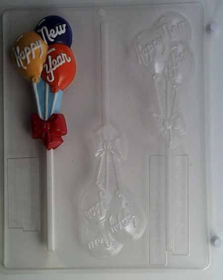 Շոկոլադե// Քաղցրավենիքի կաղապար, սառնաշաքար - երեկույթ, «Շնորհավոր Նոր Տարի» փուչիկների վրա