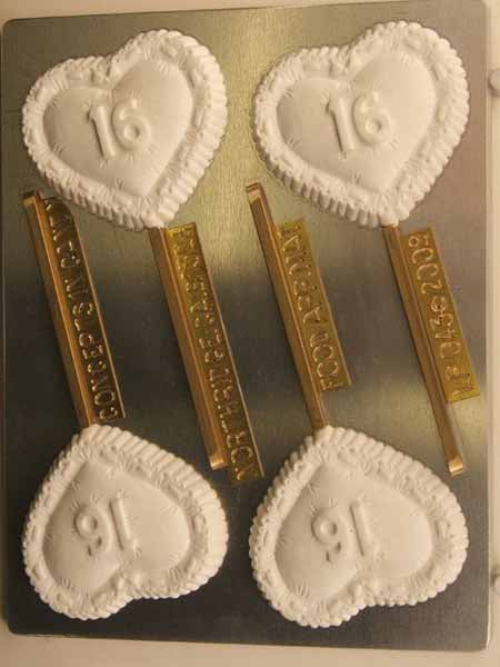 Chocolate// Candy Mold, Lollipop - Birthday, "16" on Ruffled Heart