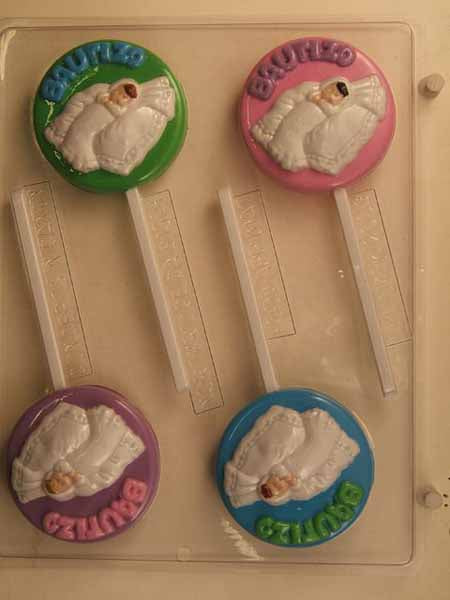 Chocolate// Candy Mold, Lollipop - Quince, 'BAUTIZO' Baby Christening on Round