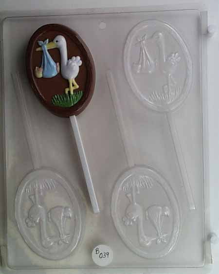 Chocolate// Candy Mold, Lollipop - Baby, Stork with Baby on Oval