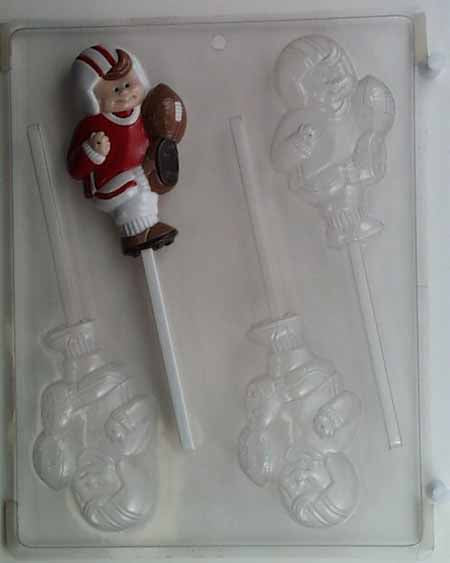 Chocolate// Candy Mold, Lollipop - Sports, Boy in Football Helmet, Kicking Football