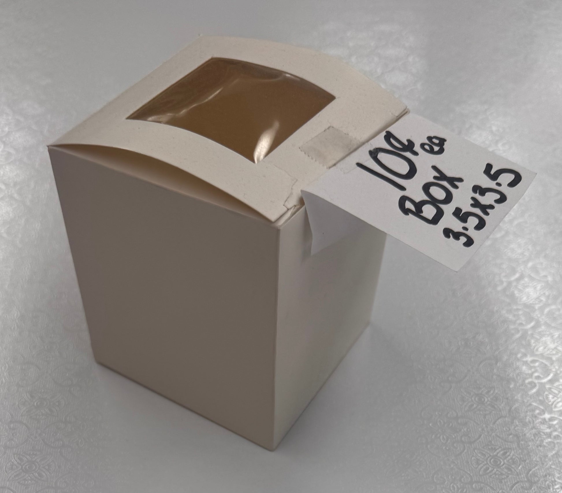 These 3.5"X3.5" dessert boxes are perfect for cookies, candies, chocolate covered strawberries, and more! Each box features a clear window to highlight your baked goods. The boxes are sold individually and pre-folded for easy assembly.