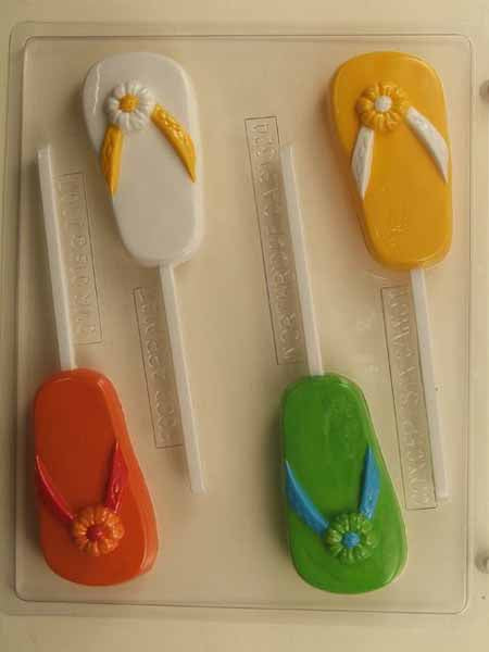 Chocolate// Candy Mold, Lollipop - Vacation, Flip Flop with textured Straps and Daisy Decoration