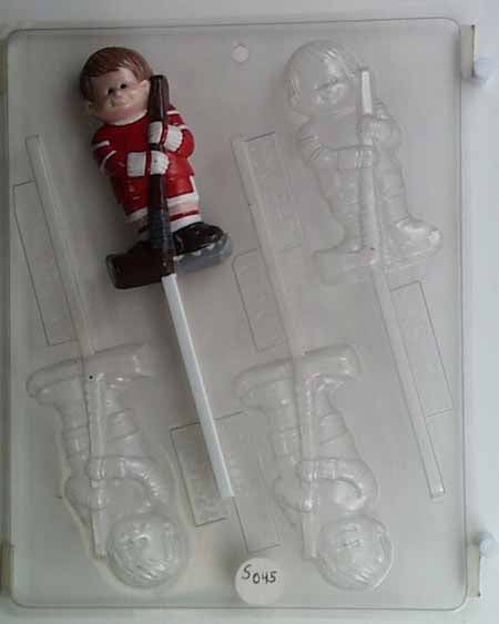 Chocolate// Candy Mold, Lollipop - Sports, Boy Holding Ice Hockey Stick