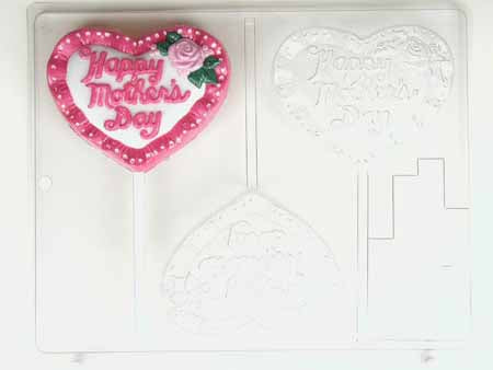 Chocolate// Candy Mold, Lollipop - Mother, "Happy Mother's Day" on Ruffled Heart