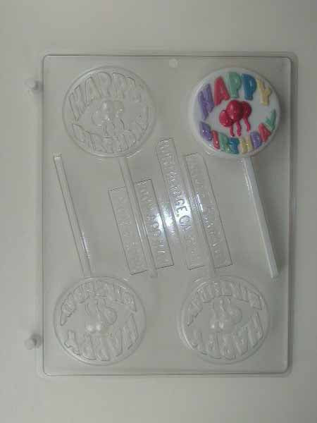 Chocolate// Candy Mold, Lollipop - Birthday, "Happy Birthday" on Round with Balloons