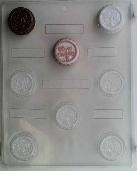 Chocolate// Candy Mold, Lollipop - Birthday, "Happy Birthday" on Round with Flowers