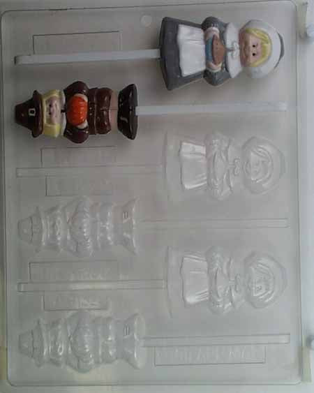 Chocolate// Candy Mold, Lollipop - Thanksgiving, Three Pilgrim Women, Three Pilgrim Men
