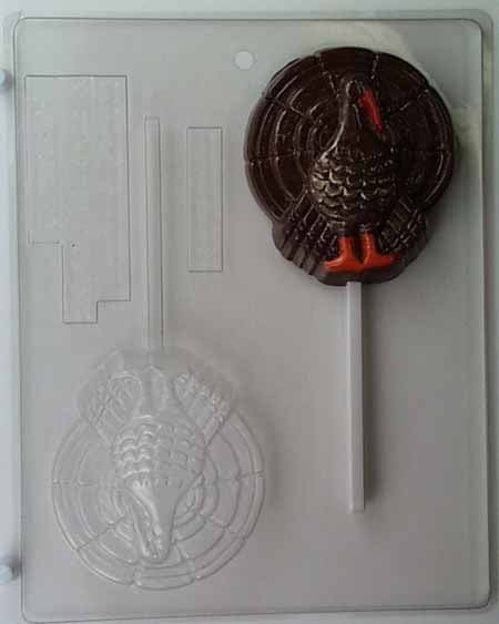 Chocolate// Candy Mold, Lollipop - Thanksgiving, Turkey, Front View with a Tail