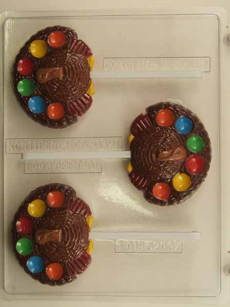Chocolate// Candy Mold, Lollipop - Thanksgiving, Medium Turkey with divot for Small Candy